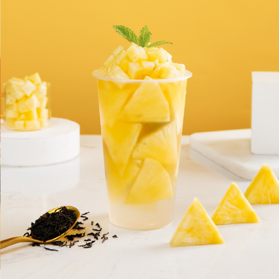 晶花茉莉花茶水、佳芝味甘蔗糖浆、新鲜菠萝、陈皮、柠檬冻、热水、盐
