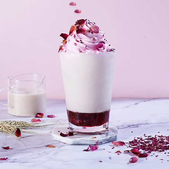 艿大师燕麦艿、晶花茉莉花茶水、晶花玫瑰冻、玫瑰酱、奶油雪顶